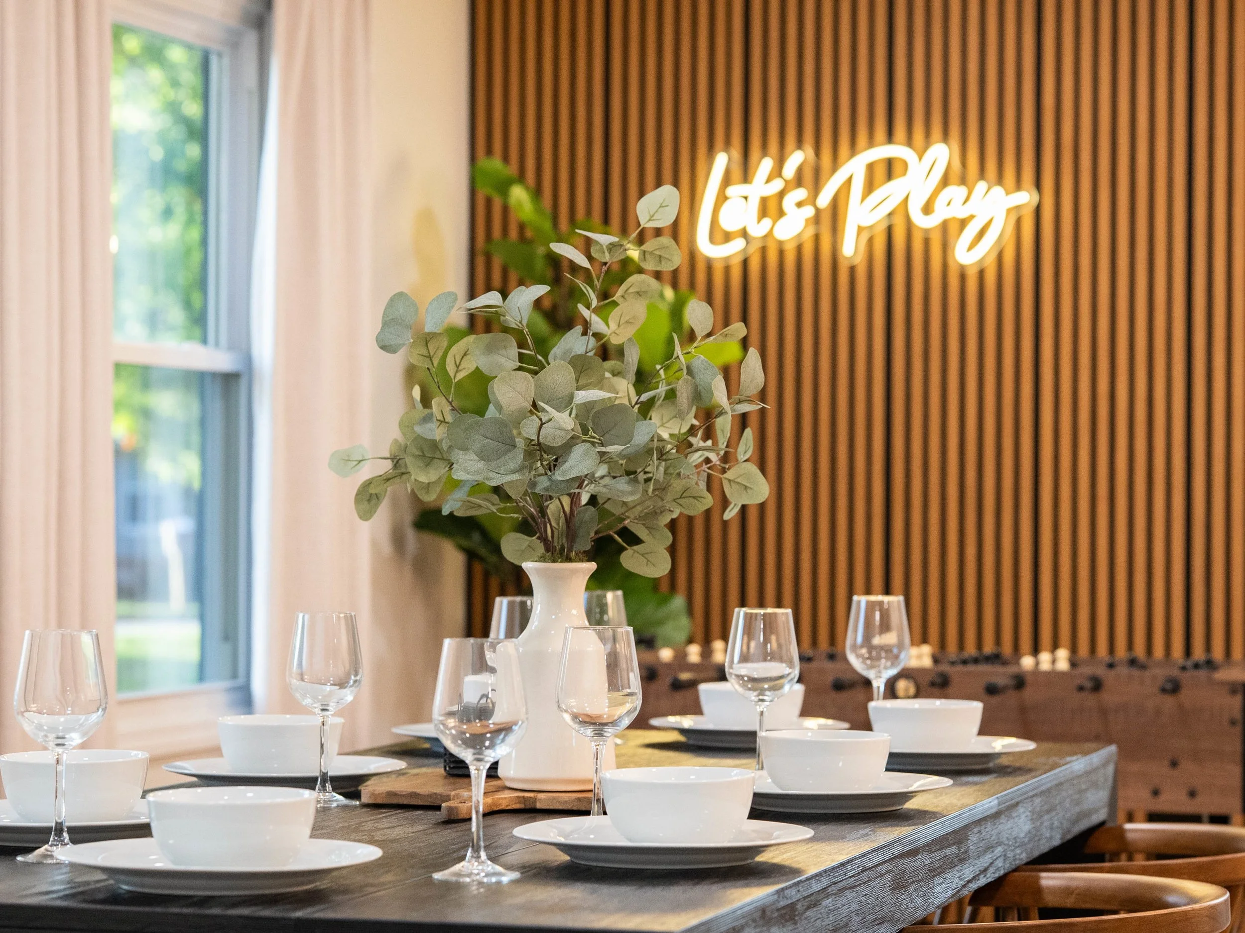 Gather for meals or fun in the multifunctional dining space.