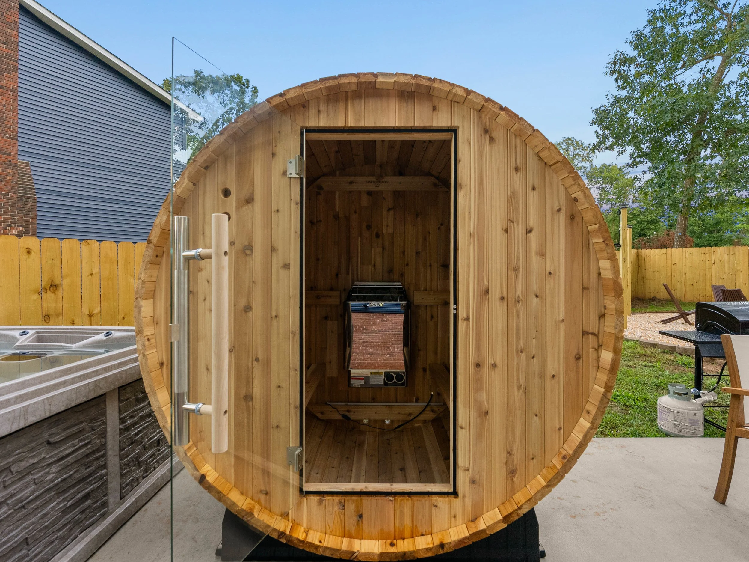 Barrel sauna for a spa-style experience