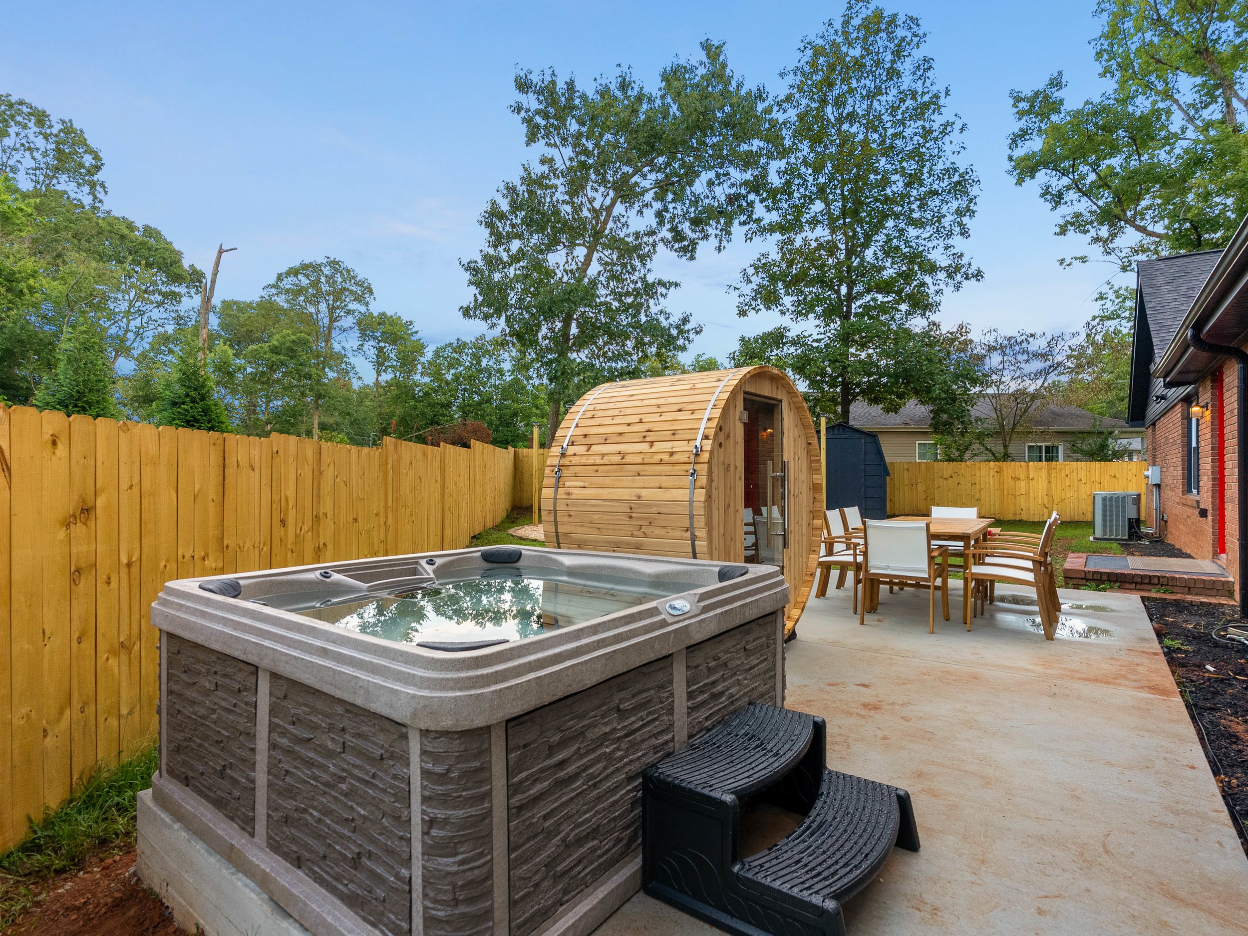Discover your perfect Spartanburg getaway in this modern 4-bedroom, 2-bath home — complete with a hot tub, barrel sauna, foosball table, and spacious fenced backyard. Perfect for families, groups, and business travelers, this peaceful retreat blends style, comfort, and convenience just minutes from Downtown Spartanburg and local attractions. Whether you’re here for a weekend getaway, a family trip, or a longer stay, this home has everything you need to feel right at home.